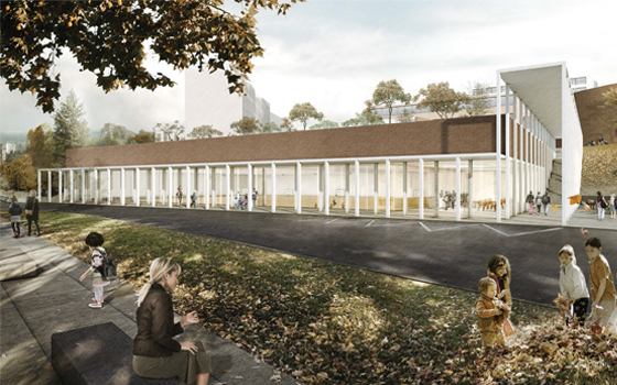 Alle Bestandsgebäude werden in ihrer ursprünglich geplanten Form saniert und den aktuellen Standards und funktionellen Anforderungen angepasst. Neuere bautechnisch notwendige Sanierungen, z.B. des Dachs, werden überarbeitet, um die Leichtigkeit und das architektonische Selbstverständnis dieser Zeit erlebbar zu machen. Um dem gewachsenen Raumbedarf Rechnung zu tragen, werden alle Bestandsgebäude mit einer eingeschossigen Pavillonstruktur ergänzt, welche sowohl die zusätzlichen Nutzflächen aufnehmen als auch einen überdachten Pausenbereich herstellen.