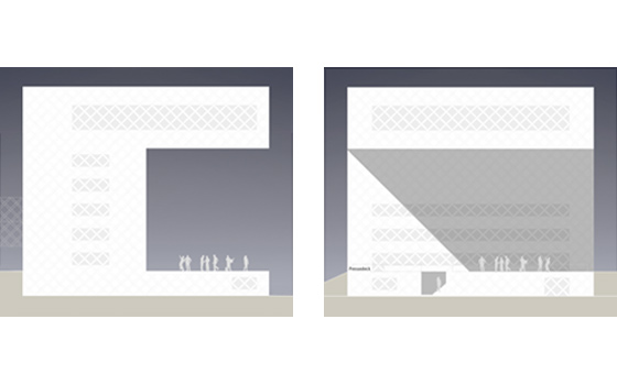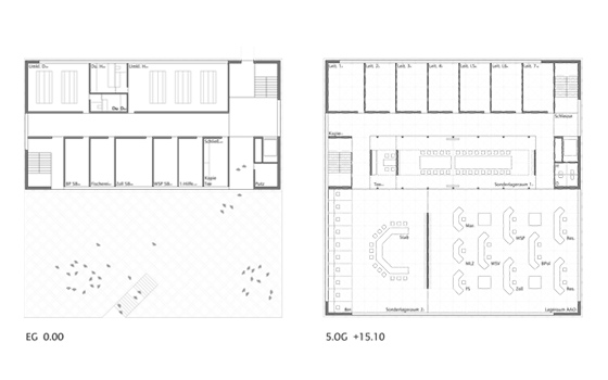 Hinter der beeindruckenden Gebäudeform verbirgt sich eine verblüffend einfache Gebäudestruktur. In der Basis sind Stellplätze für Pkw und Fahrräder sowie die Zugangskontrolle auf das gesamte Betriebsgrundstück untergebracht. In den fünf weiteren zweibündigen Geschossen sind Verwaltungsräume, Umkleiden, Archive und Räume für Betriebs- und Leitstellentechnik angeordent. Das Lagezentrum im auskragenden 6. Obergeschoss ist das Kernstück des MSZ. Symbolisch bildet es den Kopf des Gebäudes und steht, gut gesichert und mit Weitblick, für Kompetenz und Kommunikation auf höchster Ebene. Die Gebäudekonstruktion aus Stahlfachwerk ermöglicht eine Auskragung im oberen Geschoss von 14m. Die Fassadenverkleidung aus glasierten Keramikplatten nimmt die charakteristische diagonale Tragstruktur auf und verleiht dem Gebäude eine erfrischende, glänzende Haut.